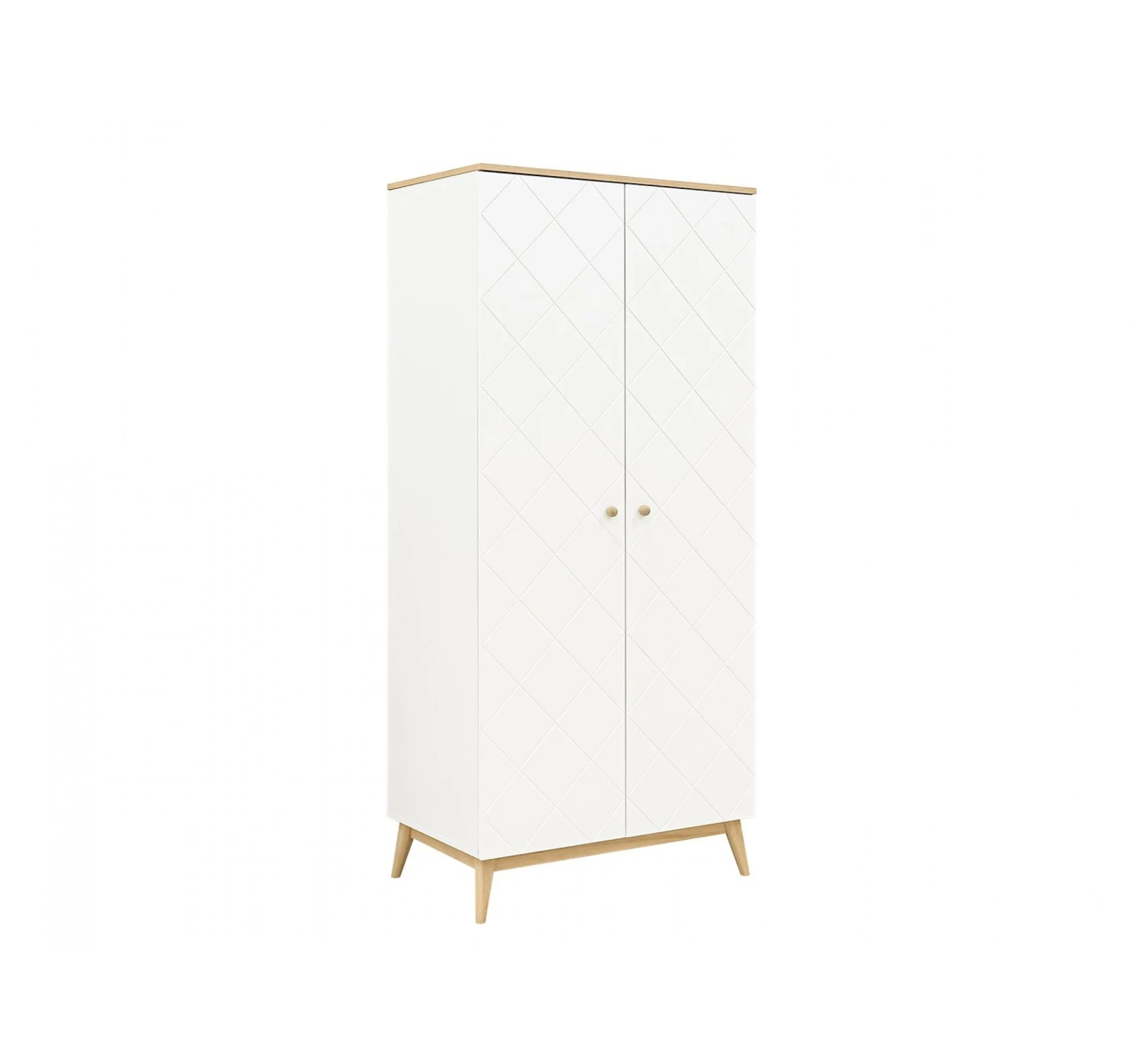 De 2-deurskast Paris van Bopita is voorzien van karakteristieke diagonale groeven en een eikenhouten afwerking, waardoor de kast een luxe uitstraling heeft. Het interieur bestaat uit één brede hangroede en twee legplanken. Hierdoor heb je dus voldoende ruimte om al je spulletjes en kleding te kunnen opbergen.