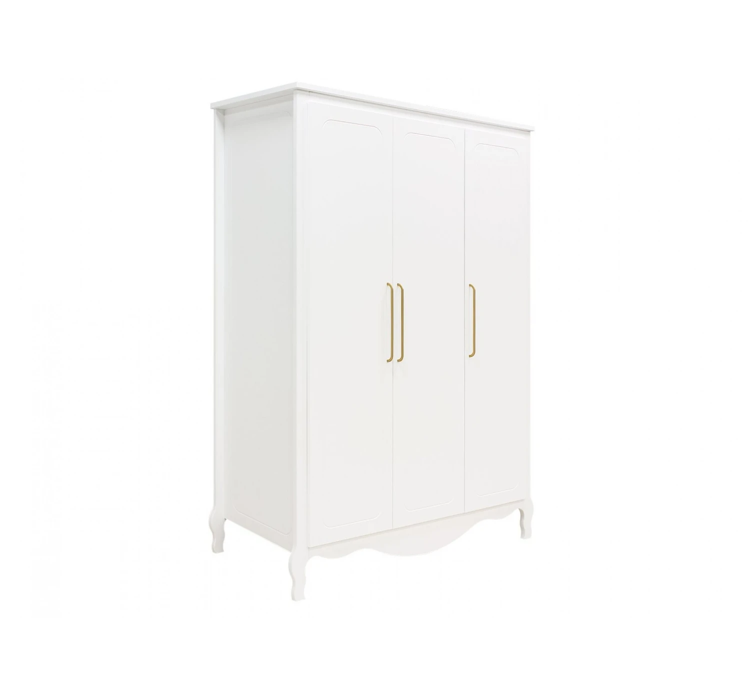 Deze ruime 3-deurskast Elena van het merk Bopita is niet alleen een schitterend meubel voor in de babykamer, maar biedt ook nog ontzettend veel opbergruimte. De kast is voorzien van een lade aan de onderzijde. Achter de twee grote deuren gaat veel ruimte schuil. De kast wordt geleverd met twee vaste legplanken, een hangroede en vijf in hoogte verstelbare legplanken. De deuren en lade zijn voorzien van ranke, matte, goudkleurige handgrepen. Dit is kenmerkend voor de serie Elena. De deuren zijn bovendien voorzien van subtiele groeven voor een extra chique effect.