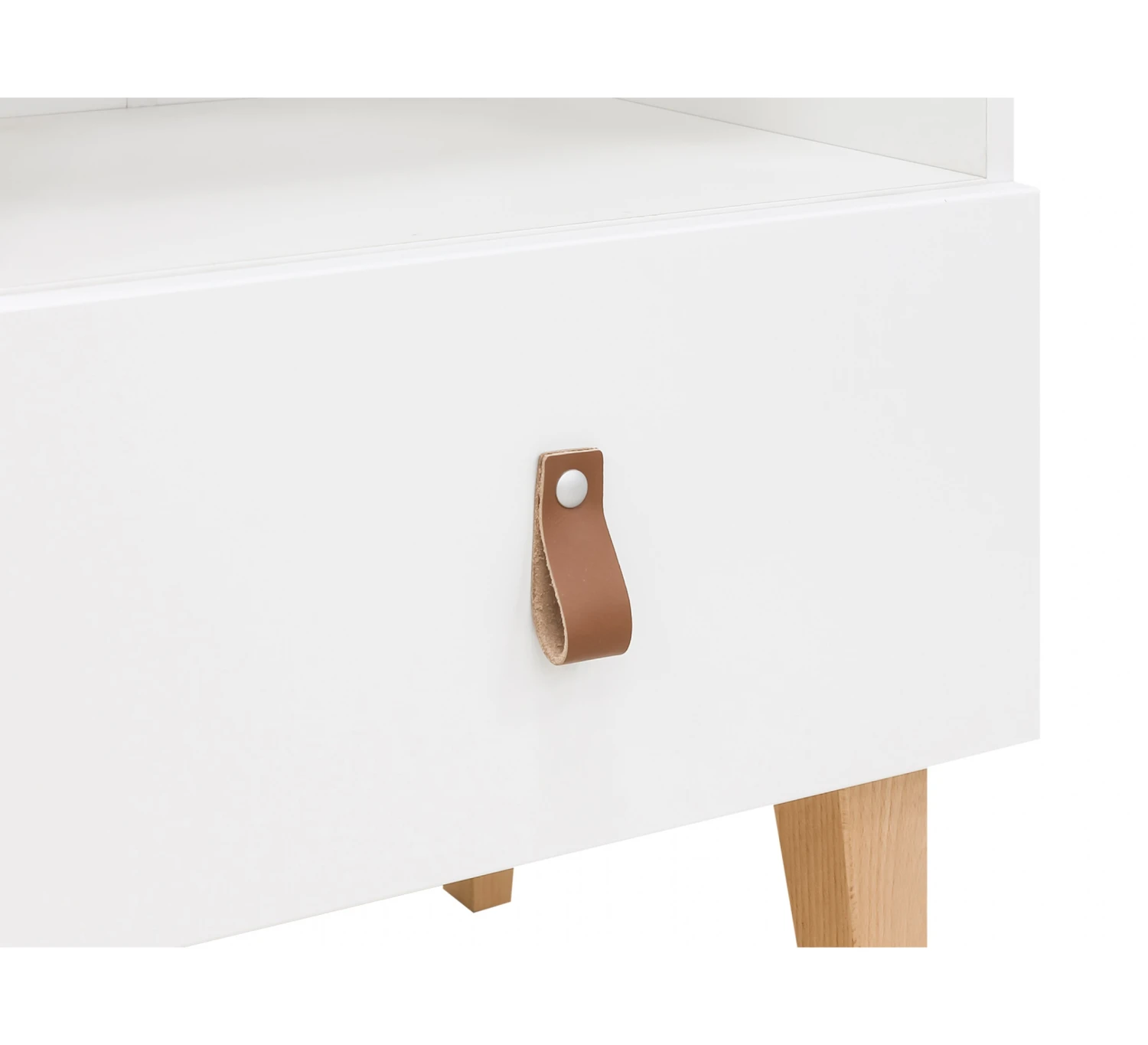 Deze boekenkast van de serie Indy is compact van vorm, maar je kunt er ontzettend veel in kwijt. Deze kast is voorzien van twee in hoogte verstelbare legplanken en een lade om spulletjes in op te bergen. Kenmerkend voor de serie Indy zijn de leren handgrepen en de ranke beukenhouten poten. Ideaal voor een stijlvolle tienerkamer of een knusse babykamer. Alle (voorlees)boekjes kun je hierin kwijt, maar je kunt hem natuurlijk ook gebruiken om decoratie in te plaatsen.