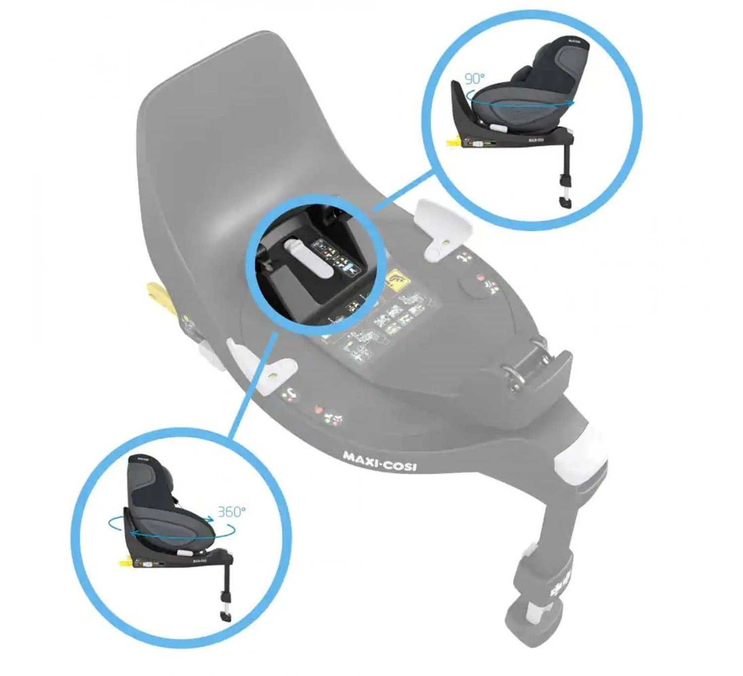 De Maxi-Cosi FamilyFix 360 base is zo gemaakt dat je de Maxi-Cosi Pebble 360 of Maxi-Cosi Pearl 360 autostoel er snel en eenvoudig op vastzet. Met de aanschaf van de FamilyFix 360 koop je een autostoel base die snel en gemakkelijk is te gebruiken. De FamilyFix 360 base voldoet aan de hoogste en nieuwste normen van i-Size, doordat achterwaarts gericht reizen tot 4 jaar mogelijk is. Dit geeft je kindje extra hoofd- en nekbescherming. Visuele indicatoren op de base en audiofeedback laten weten of het autostoeltje correct is geïnstalleerd en de TravelSafe Rotation Control geeft gemoedsrust, in de wetenschap dat je kindje achterwaarts gericht reist tot circa 4 jaar. De Maxi-Cosi FamilyFix 360 kan met behulp van de ISOFIX-bevestigingspunten en de steunpoot eenvoudig en snel worden geplaatst. Na het plaatsen van de base, kun je de Maxi-Cosi Pebble 360 of Maxi-Cosi Pearl 360 autostoeltjes door Click & Go perfect vastklikken. De autostoel is in deze base 360 graden draaibaar.