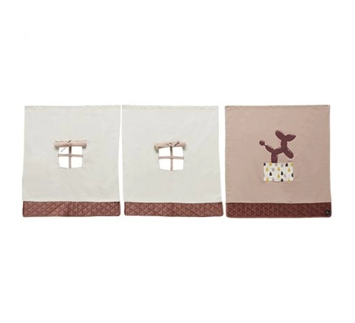 Deze grappige speelgordijn is van het merk Lifetime Je kunt deze gordijn bevestigen aan een semi hoog bed van 128cm hoog en de stoffen is gemaakt van 100% katoen.