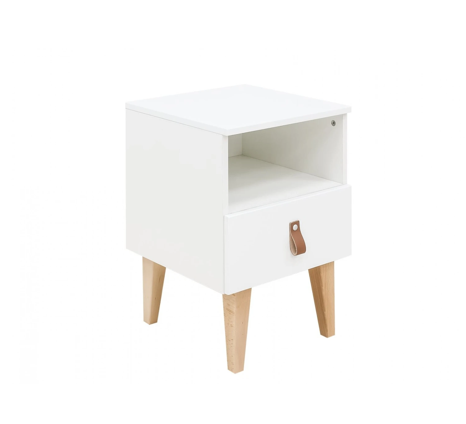 Het nachtkastje Indy is voorzien van een ruime lade en heeft een mooi leren handgreepje. Ook heeft het kastje een open vak waarin je spulletjes kunt opbergen. Ideaal voor spullen die je snel bij de hand wilt hebben in bed. Het nachtkastje Indy staat op ranke beukenhouten pootjes, kenmerkend voor deze serie.